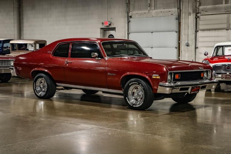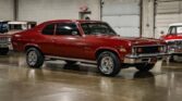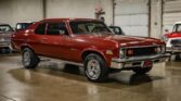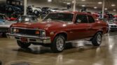 This 1973 Chevrolet Nova is a classic muscle car with a modern twist. Under the hood lies a powerful 350ci V8 engine paired with an automatic transmission. The exterior stands out with a custom red paint job featuring a heavy metallic flake, giving it a bold and eye-catching presence. This is complemented by American Racing wheels that enhance the car’s aggressive stance. Inside, a sleek black interior creates a timeless contrast with the vibrant exterior, and a Pioneer stereo system adds modern convenience. This Nova offers a blend of vintage American muscle appeal with tasteful modern upgrades.